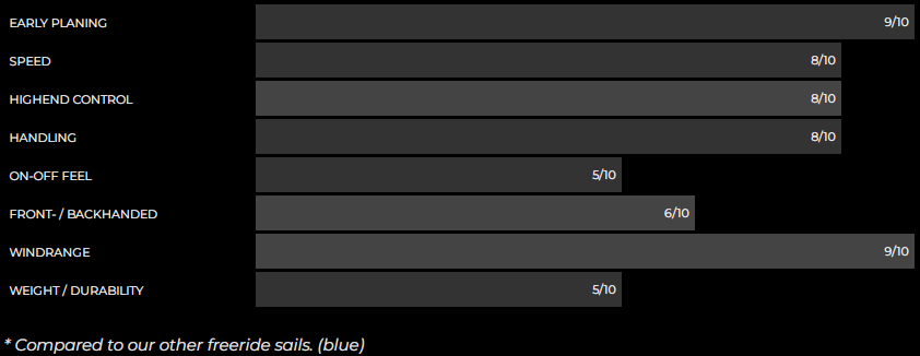 Ease of use but in a "PATRIK" way. This means that we don't cut any corner in the construction materials selected for our Freeride range. It's not a cheap material sail at all!